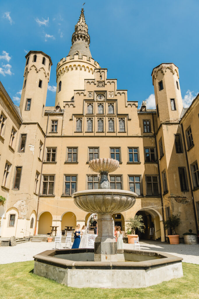 No worries — we have stunning indoor spaces like the historic Rittersaal and vaulted cellar to host your ceremony or reception. You’ll be covered, rain or shine.